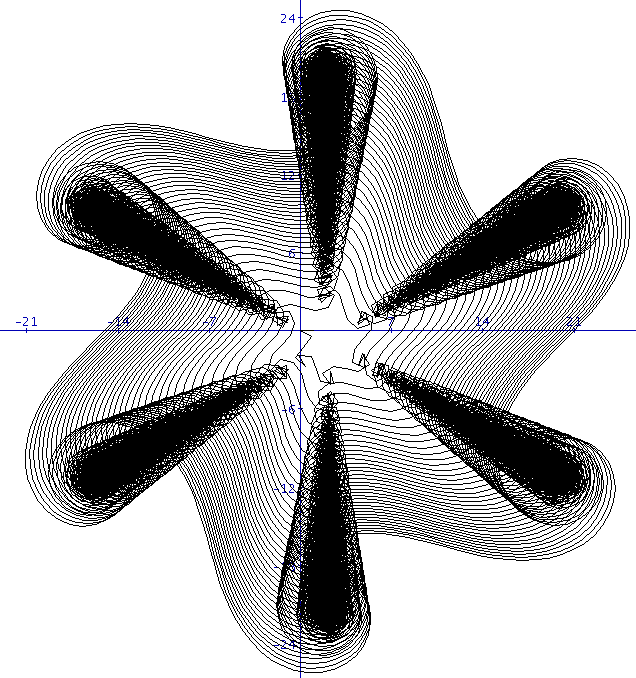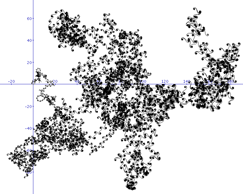 so erhält man eine Verbindung zur Theorie der Exponentialsummen. Die entstehenden Bilder zeigen unter Umständen geometrische Strukturen, deren Erklärung eine tiefere mathematische Analyse erfordert: